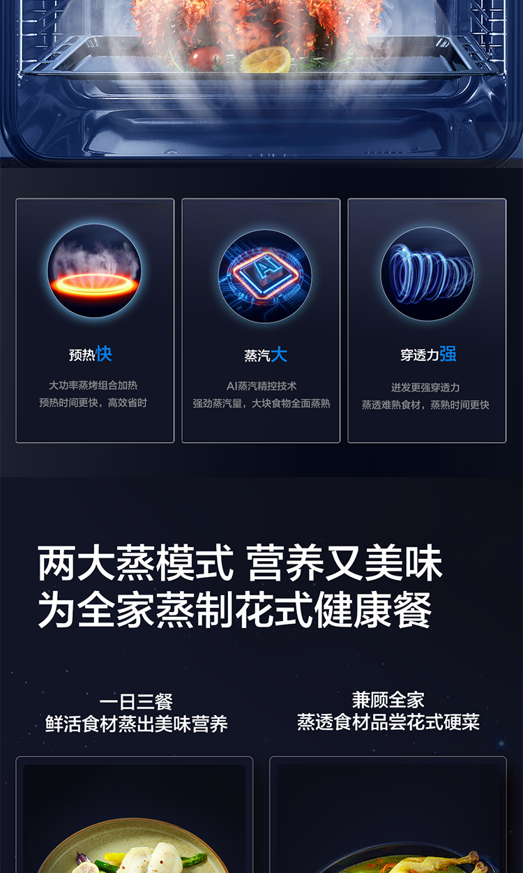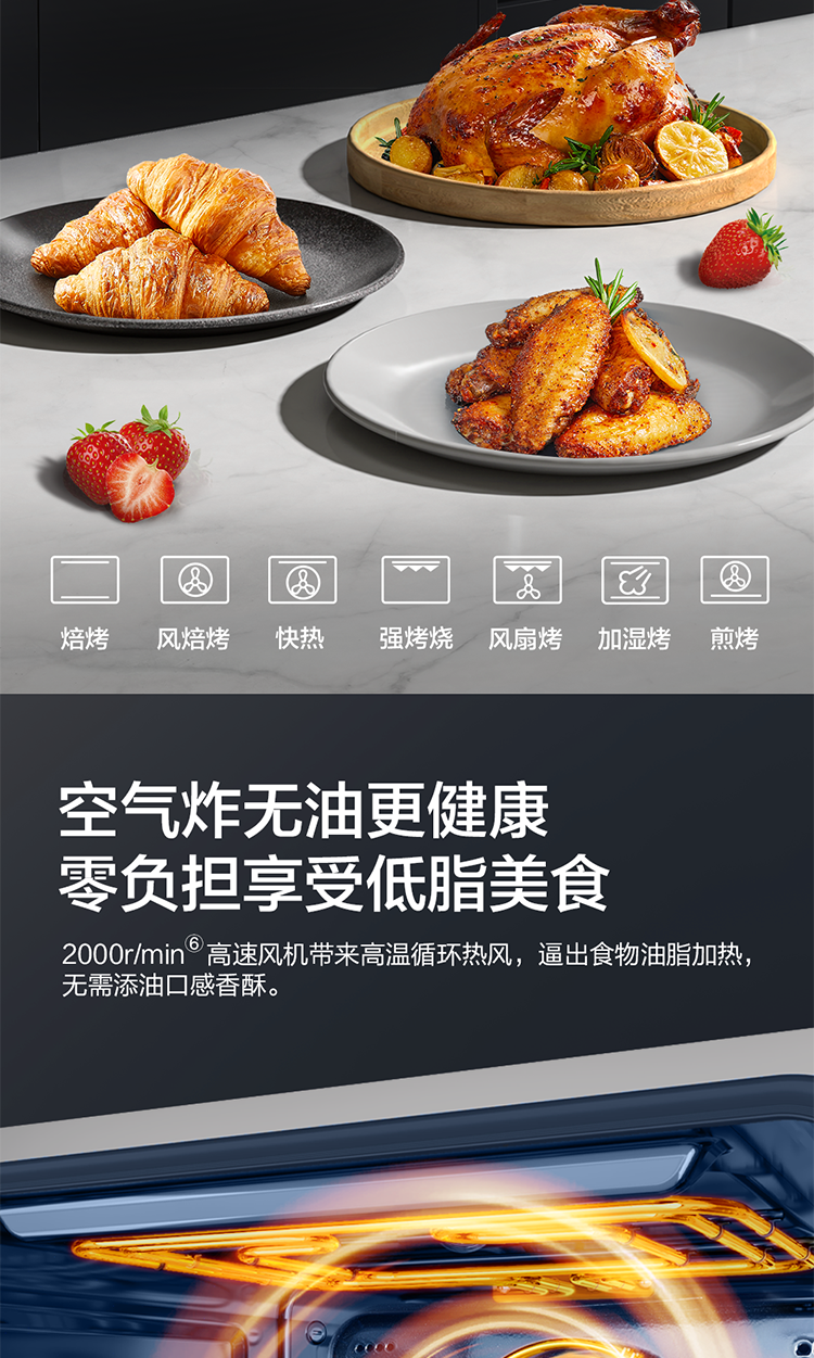 鲜蒸嫩烤空气炸,健康美味顾全家