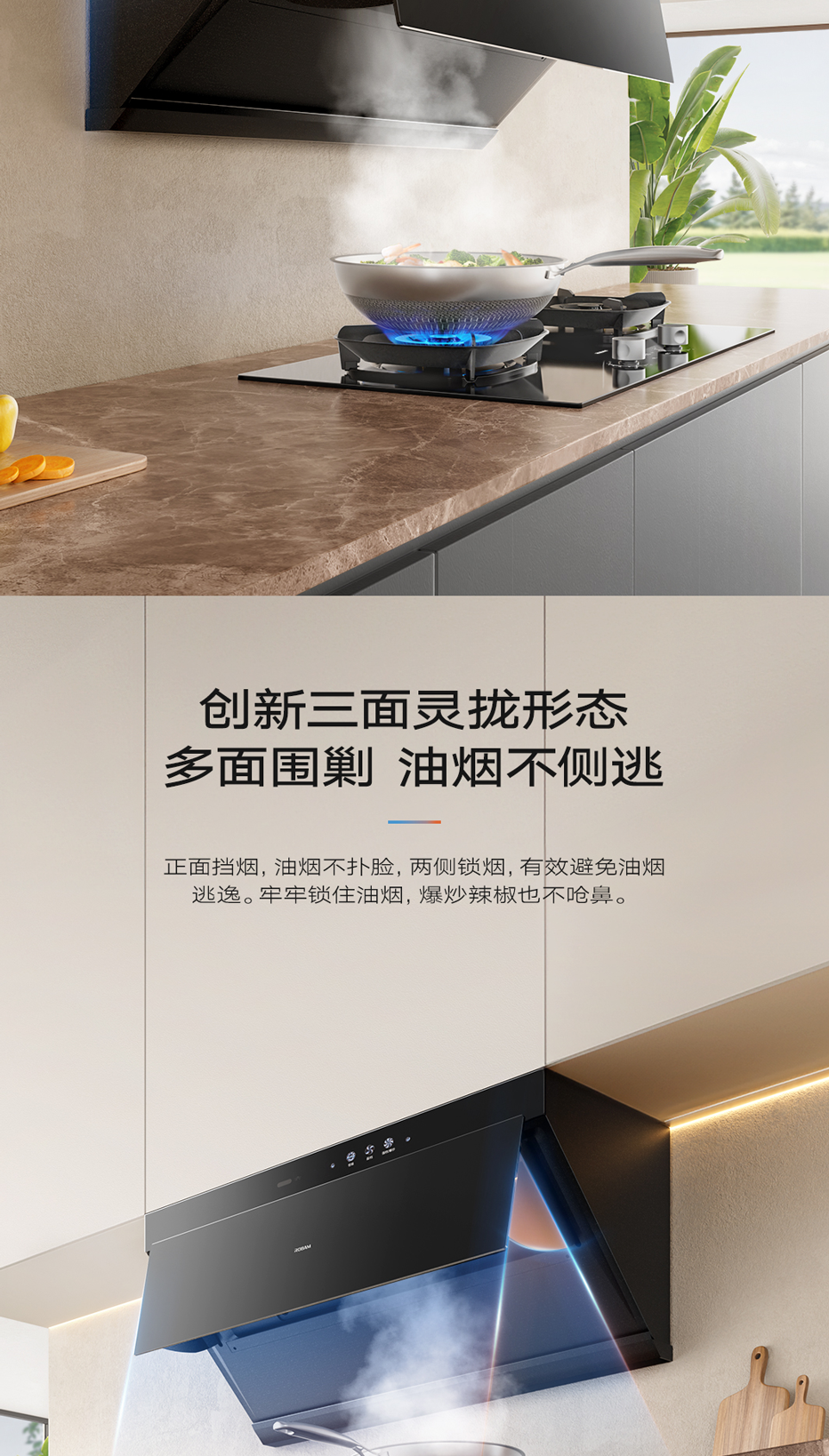 拢烟多两面,油烟不侧逃