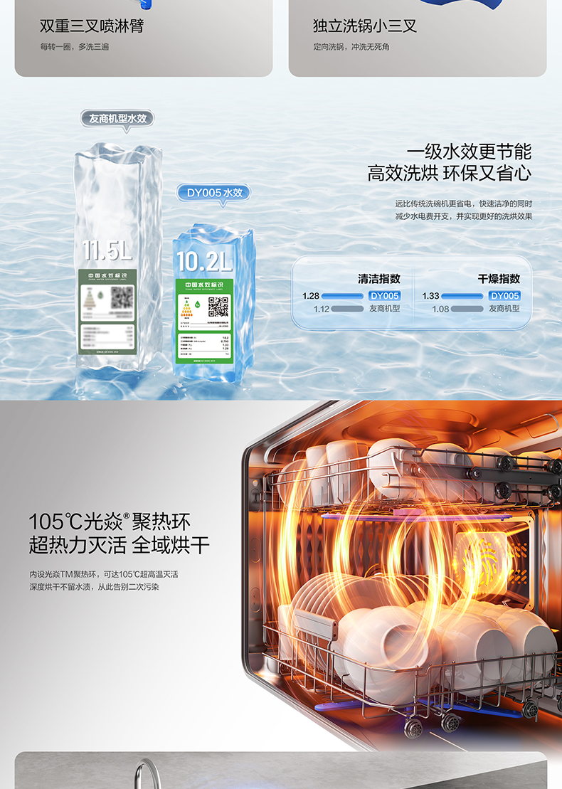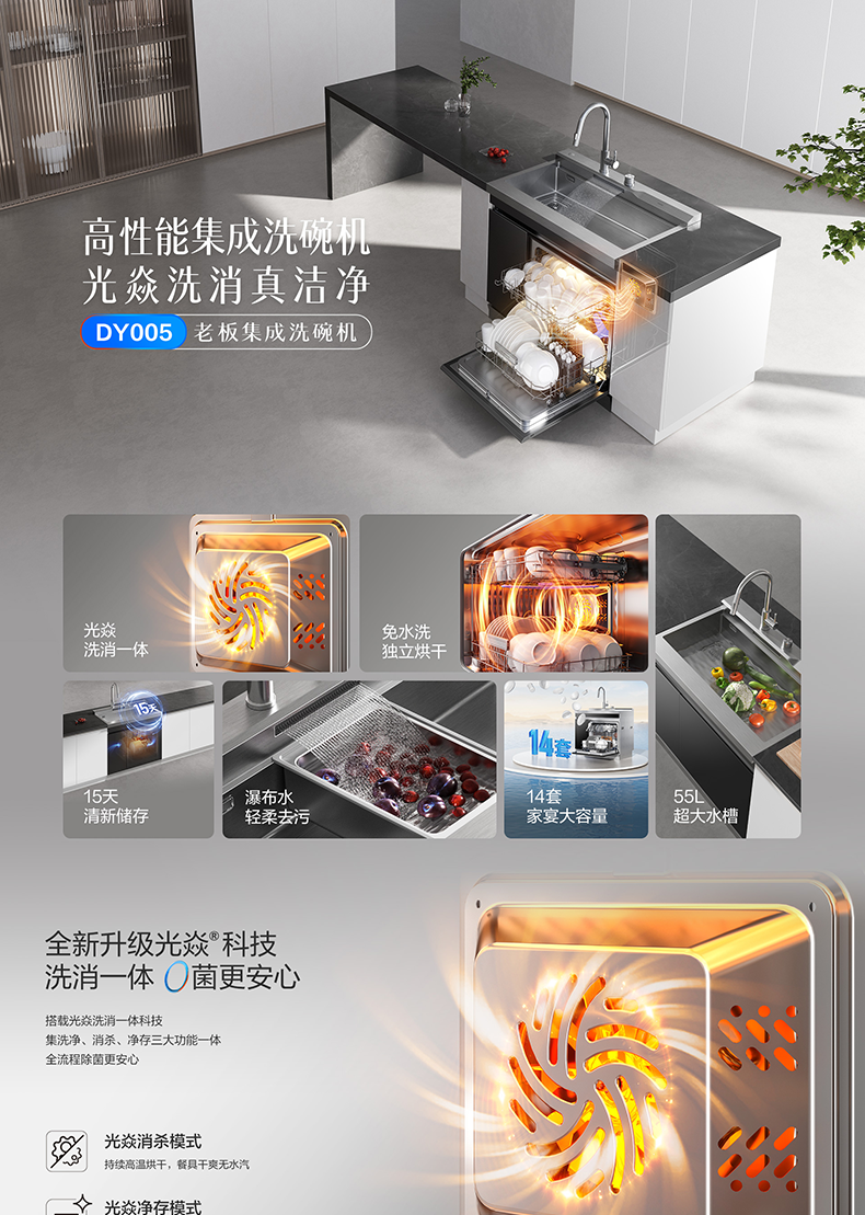 高性能集成洗碗机,光焱洗消真洁净